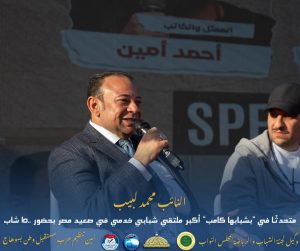 النائب محمد لبيب متحدثًا في “بشبابها كامب” أكبر ملتقي شبابي خدمي في صعيد مصر بحضور الكاتب الكبير عبدالرحيم كمال و الفنان أحمد أمين
