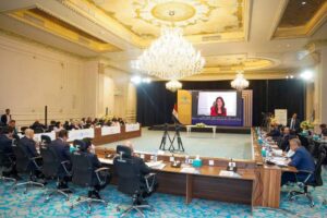 رانيا المشاط وزيرة التخطيط والتعاون الدولي خلال المائدة المستديرة رفيعة المستوى حول السكان وتنمية رأس المال البشري في مصر