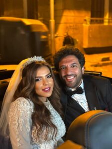 الصورة الأولى التي تجمع ناهد السباعي وحسن الرداد في محارب الصورة من حفل زفافهما في العمل .