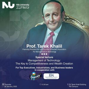 محاضرة تاريخية للرئيس المؤسس لجامعة النيل حول “إدارة التكنولوجيا: مفتاح القدرة التنافسية وخلق الثروات”