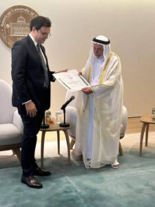وزير الثقافة يُسلم سمو الشيخ الدكتور سلطان بن محمد القاسمي حاكم الشارقة “جائزة النيل للمبدعين العرب”