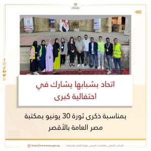 اتحاد بشبابها يشارك في احتفالية كبرى بمناسبة ذكرى ثورة 30 يونيو بمكتبة مصر العامة بالأقصر