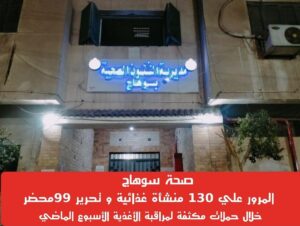 صحة سوهاج :المرور علي 130 منشأة غذائية وتحرير 99 محضر خلال حملات مكثفة لمراقبة الأغذية