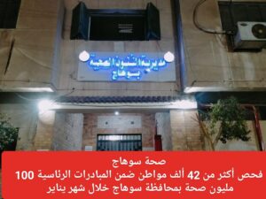 صحة سوهاج : فحص أكثر من 42 ألف مواطن ضمن المبادرات الرئاسية 100 مليون صحة خلال شهر يناير بمختلف مراكز المحافظة