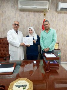 المدير العام للمستشفى الهرم منصور خليل يكرم الأستاذة دعاء محمد لاجتيازها زمالة الطوارى