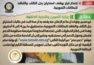 ما هى حقيقة إصدار قرار بوقف استخراج بدل التالف والفاقد للبطاقات التموينية ؟