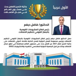 رئيس قطاع المشروعات القومية بالجهاز القومي لتنظيم الاتصالات يحصل على جائزة أفضل بحث على مستوى العالم