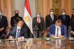 وزيرا “التجارة والصناعة والانتاج الحربي” يشهدان توقيع اتفاقية تصنيع مشترك بين مصنع (200 الحربي) و (MCV) في مجال تصنيع الأوتوبيسات الكهربائية