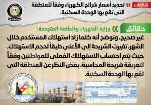 تعرف على حقيقة تحديد أسعار شرائح الكهرباء وفقاً للمنطقة التي تقع بها الوحدة السكنية
