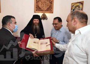 رئيس الوزراء يتسلم من الأب ميخائيل وسام الدير من الطبقة الأولى للشهيدة سانت كاترين