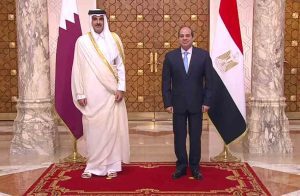صورة تذكارية للرئيس السيسي وأمير قطر بقصر الاتحادية