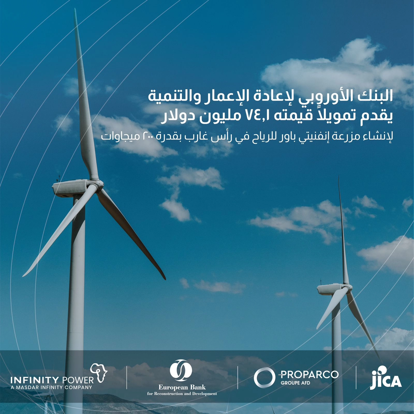 البنك الأوروبي لإعادة الإعمار والتنمية يمول إنشاء مزرعة رياح رأس غارب التي تطورها إنفنيتي باور