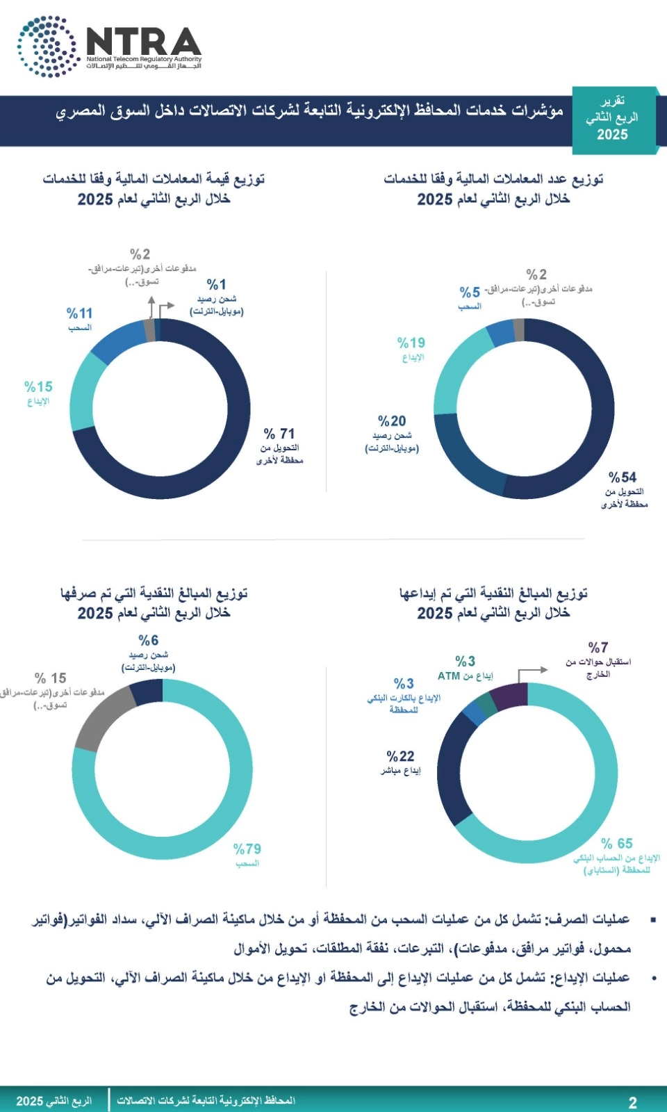 الجهاز القومي لتنظيم الاتصالات يصدر تقرير مؤشرات استخدام المحافظ الإلكترونية التابعة لشركات الاتصالات للربع الثاني لعام 2025