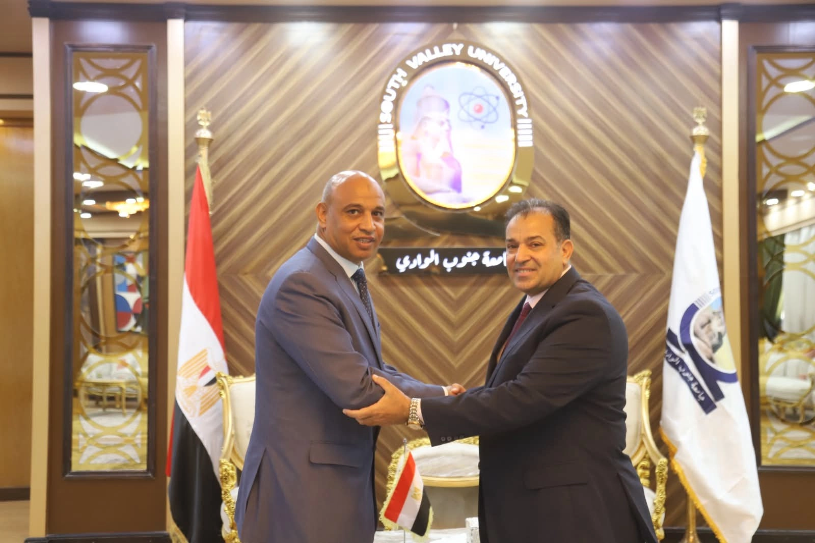 رئيس جامعة جنوب الوادي يستقبل الدكتور أشرف موسى ويهنئه بتوليه منصب نائب رئيس الجامعة لشئون التعليم والطلاب