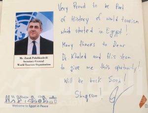الأمين العام للسياحة العالمية يوثق زيارته للمتحف المصري الكبير في كتاب الزيارات