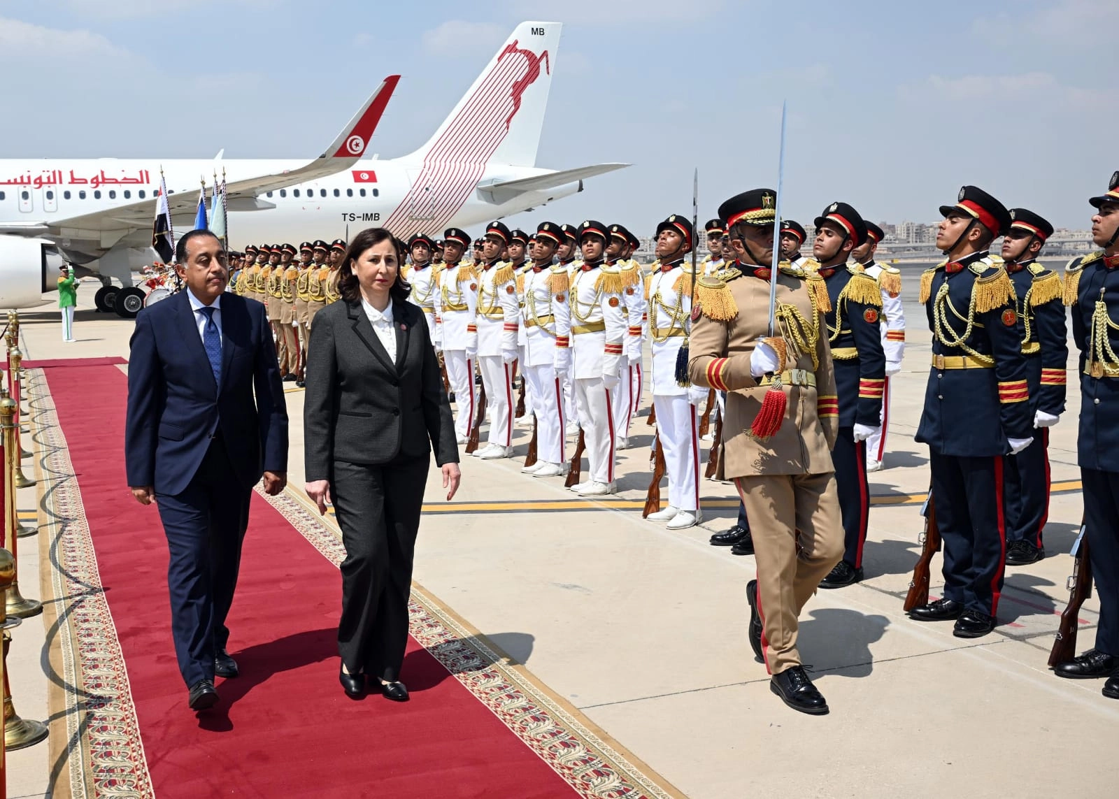 رئيس الوزراء يستقبل نظيرته التونسية بمطار القاهرة الدولي