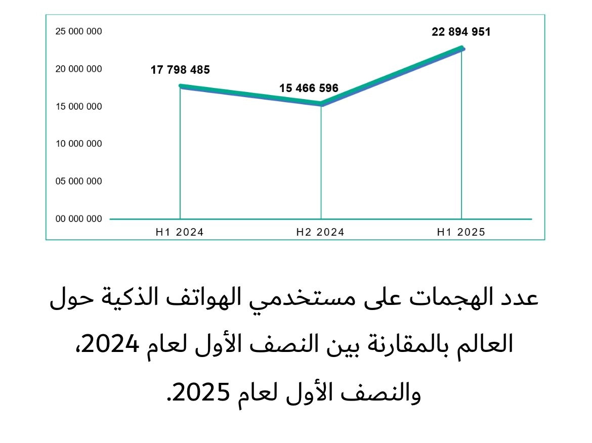 تقرير كاسبرسكي: ارتفاع الهجمات السيبرانية بنسبة 29% على الهواتف الذكية خلال النصف الأول لعام 2025