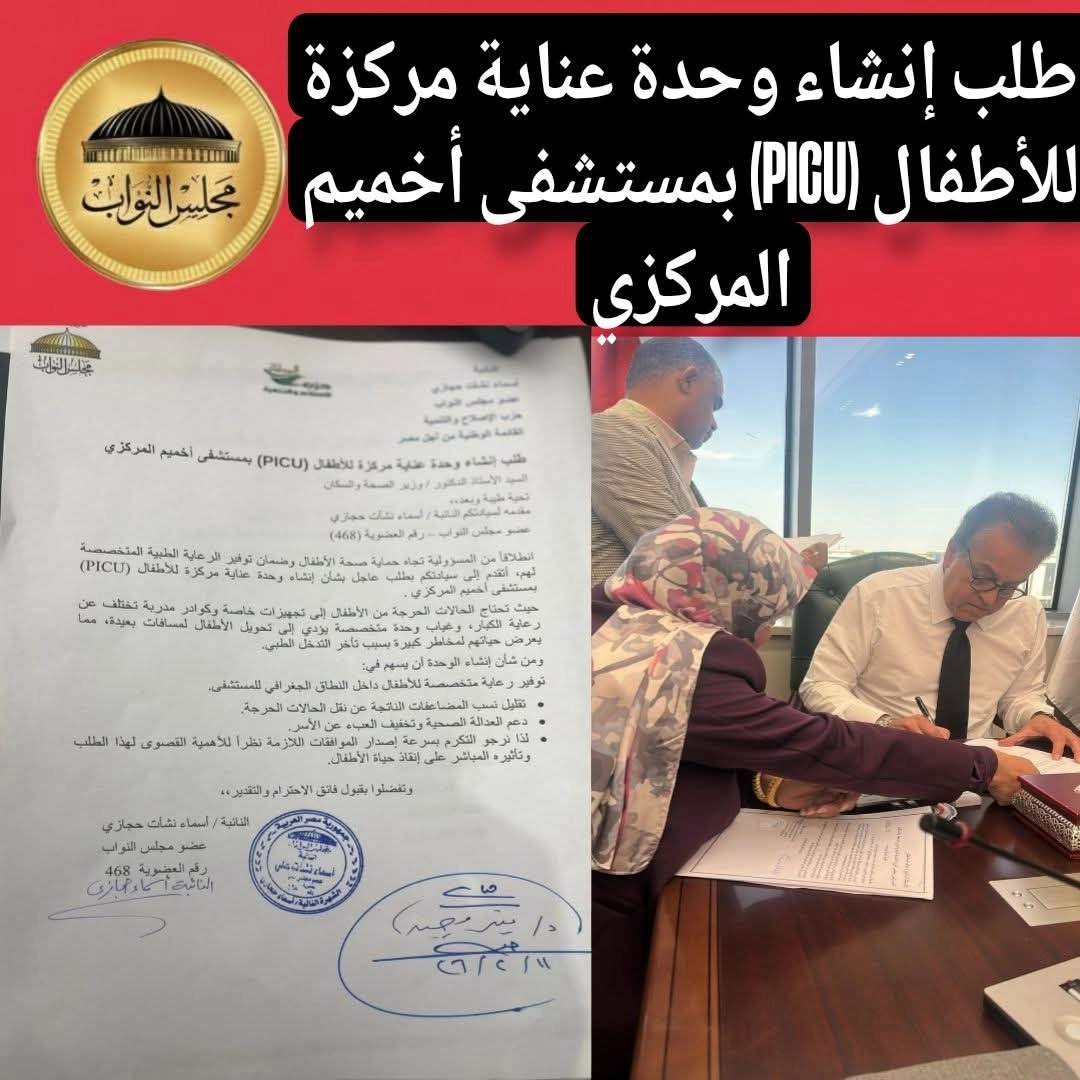 خلال لقائها بوزير الصحة.. النائبة أسماء نشأت تطالب بإنشاء عناية مركزة للأطفال بأخميم