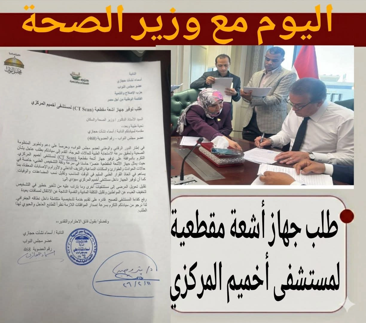 النائبة أسماء حجازي تُقدم طلبًا لوزير الصحة لتوفير جهاز أشعة مقطعية لمستشفى أخميم المركزي