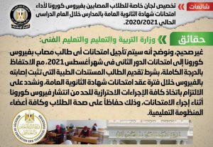 حقيقة تخصيص لجان خاصة للطلاب المصابين بفيروس كورونا لأداء امتحانات شهادة الثانوية العامة بالمدارس