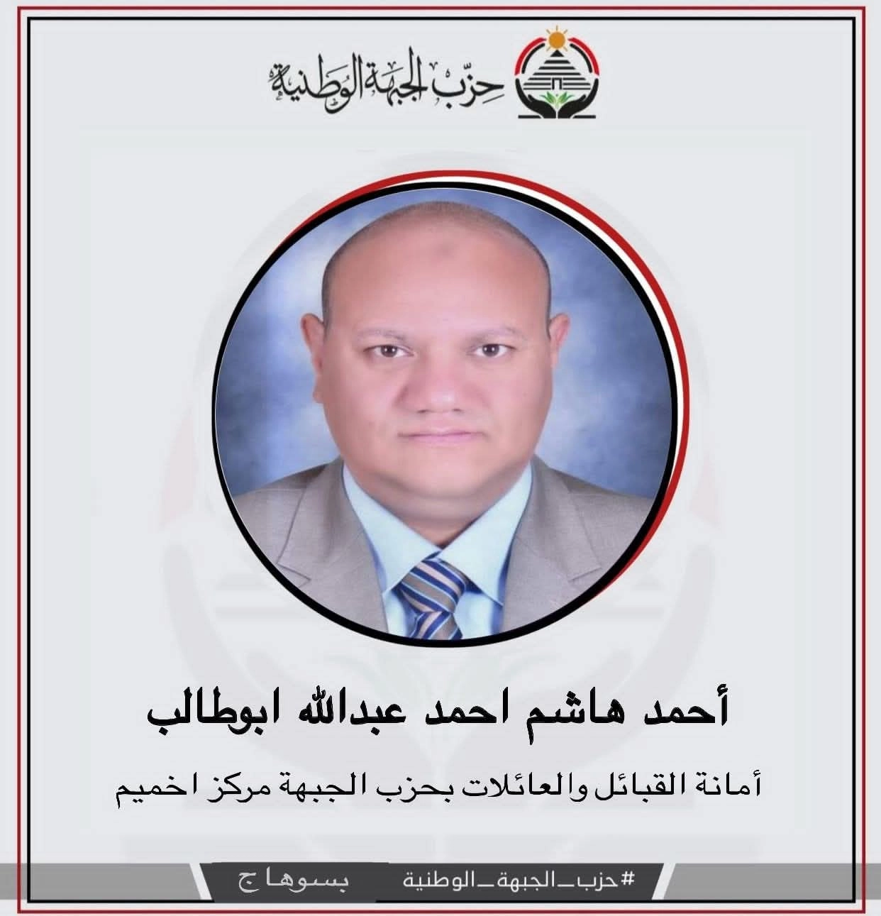 اللواء صلاح شوقي عقيل يعلن تكليف أحمد هاشم أبوطالب بأمانة القبائل والعائلات بأخميم
