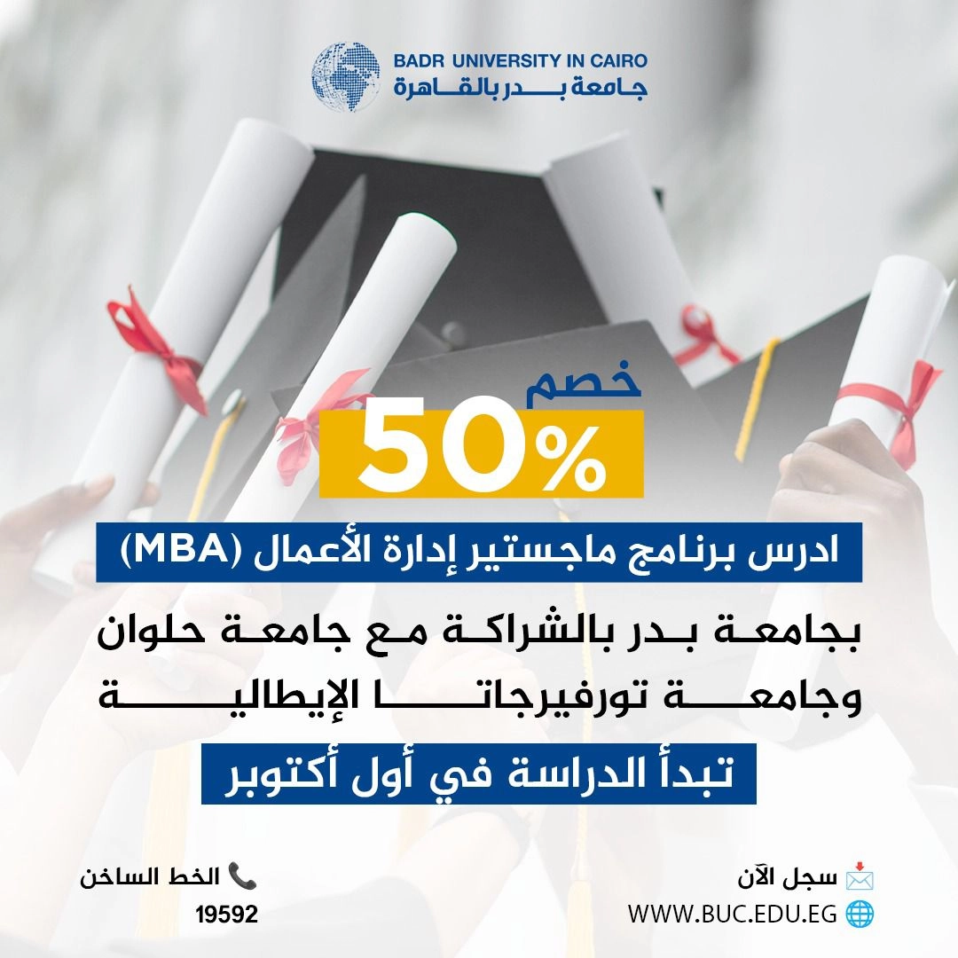 جامعة بدر تعلن عن فتح باب القبول ببرنامج ماجستير إدارة الأعمال (MBA) بالشراكة مع جامعة حلوان وجامعة تورفيرجاتا الإيطالية