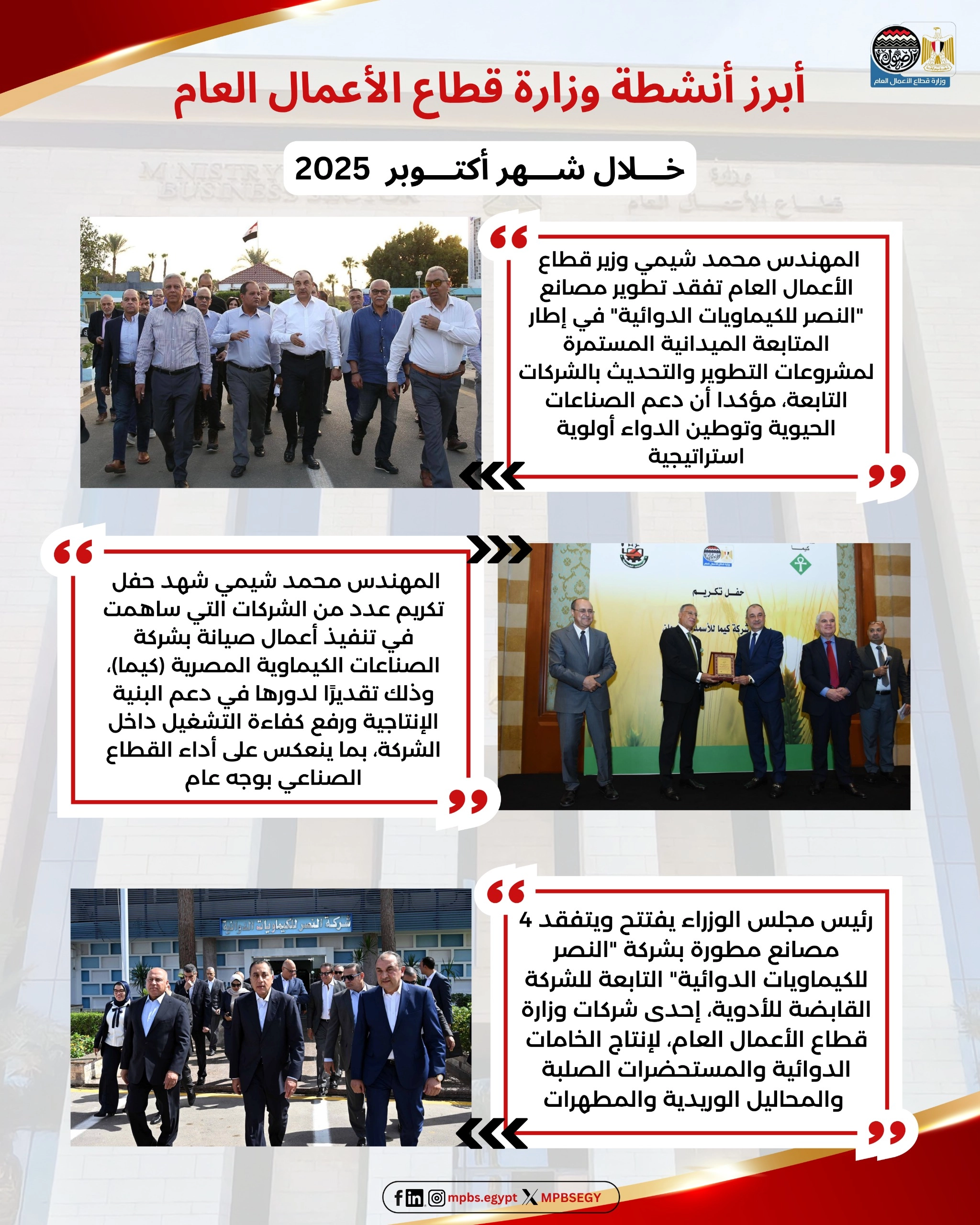 أبرز أنشطة وزارة قطاع الأعمال العام خلال شهر أكتوبر 2025