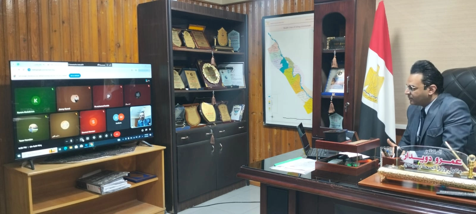 «دويدار» يعقد اجتماعًا موسعًا مع مديري الإدارات الصحية عبر تقنية الفيديو كونفرانس