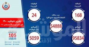 تسجيل 168 حالة إيجابية جديدة لفيروس كورونا.. و 24 حالة وفاة