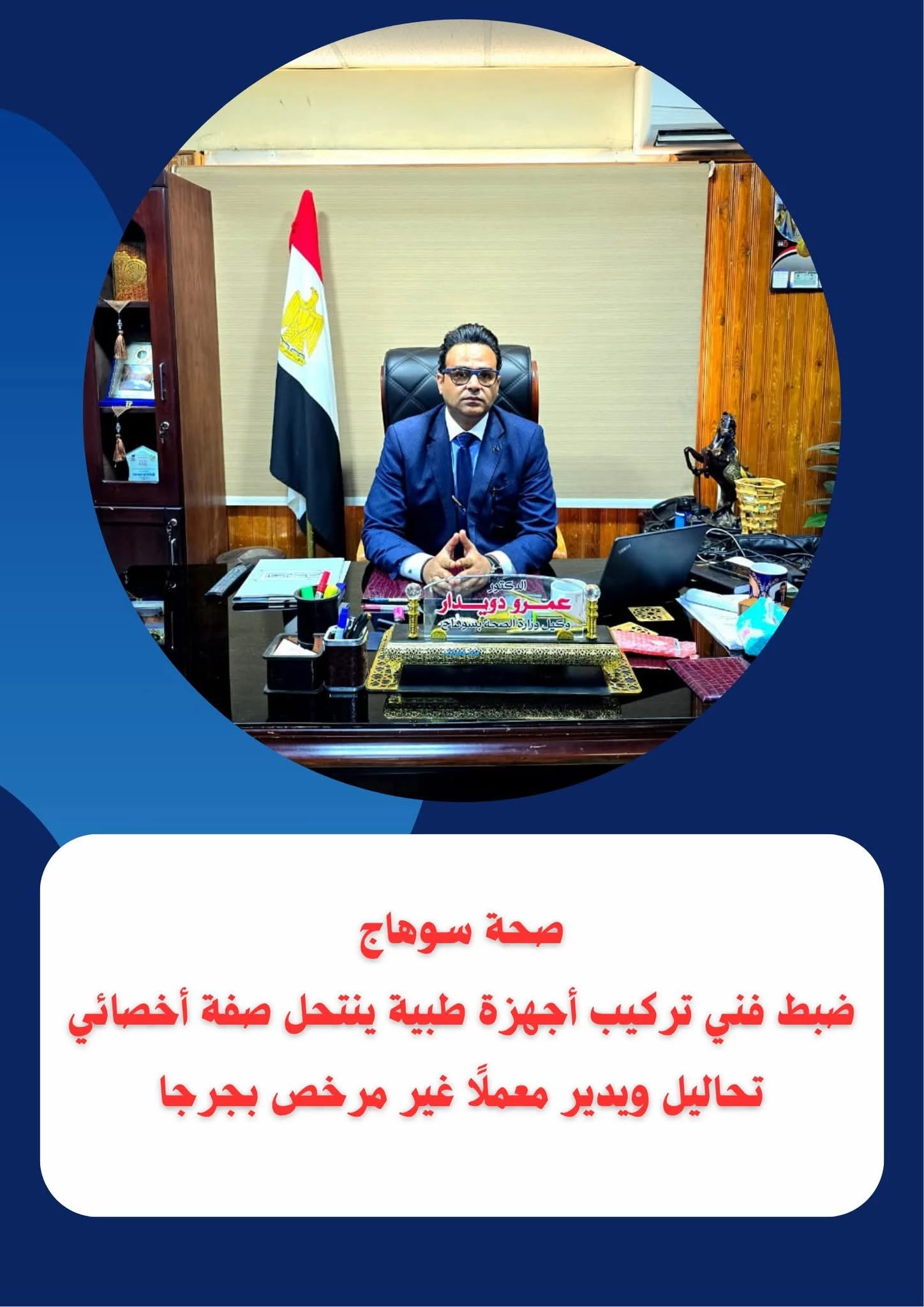 “صحة سوهاج” ضبط فني تركيب أجهزة طبية ينتحل صفة أخصائي تحاليل ويدير معملًا غير مرخص بجرجا