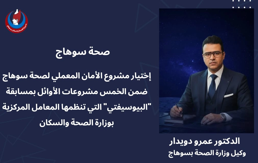 صحة سوهاج :إختيار مشروع الأمان المعملي لصحة سوهاج ضمن الخمس مشروعات الأوائل بمسابقة “البيوسيفتي” التي تنظمها المعامل المركزية بوزارة الصحة والسكان