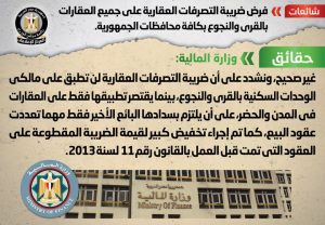 ما هى حقيقة فرض ضريبة التصرفات العقارية على جميع العقارات بالقرى والنجوع بكافة محافظات الجمهورية؟