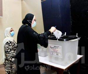 وزيرة التجارة والصناعة تدلى بصوتها بانتخابات مجلس الشيوخ بكلية الفنون الجميلة