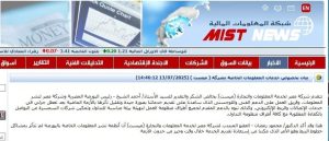 شركة مصر لخدمة المعلومات والتجارة (ميست) تشكر رئيس البورصة المصرية وشركة مصر لنشر المعلومات